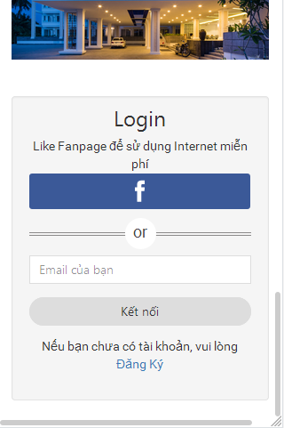 -Khi du khách truy cập vào hệ thống WiFi của Champa Island, trang chào sẽ xuất hiện trên trình duyệt web, bạn có thể truy cập bằng cách đăng nhập liên kết với Facebook hoặc kết nối qua email. Thông tin khách hàng: - Với tổng diệc tích xây dựng gần 62.000m2, đảo thứ nhất-Champa Island là nới tập trung những dịch vụ về lưu trú, nghỉ dưỡng với khách sạn 168 phòng và dịch vụ ăn uống, giải trí, sự kiện..đem lại cho du khách những trải nghiệm tuyệt vời nhất!