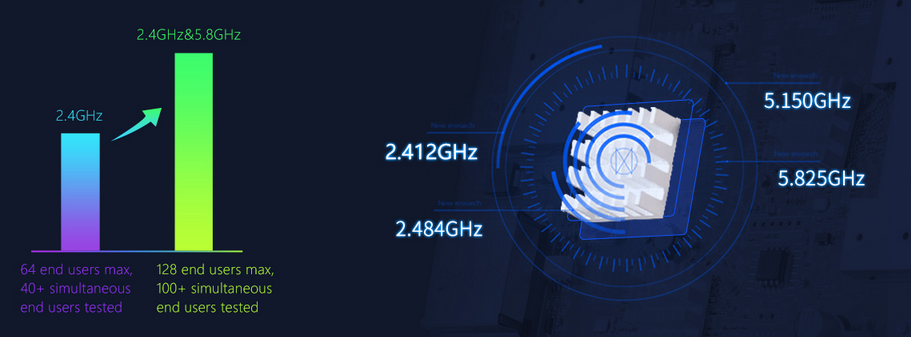 Tốc độ truyền 1200Mbps, có thể phục vụ 128 thiết bị, đã thử nghiệm thành công 100 thiết bị đồng thời