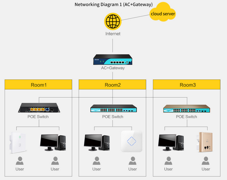 Dựa vào gia thức CAPWAP mà quản lý tập trung các AC Controller, cấu hình từ xa qua Cloud Server, dễ dàng triển khai, giám sát và quản lý, tiết kiệm chi phí