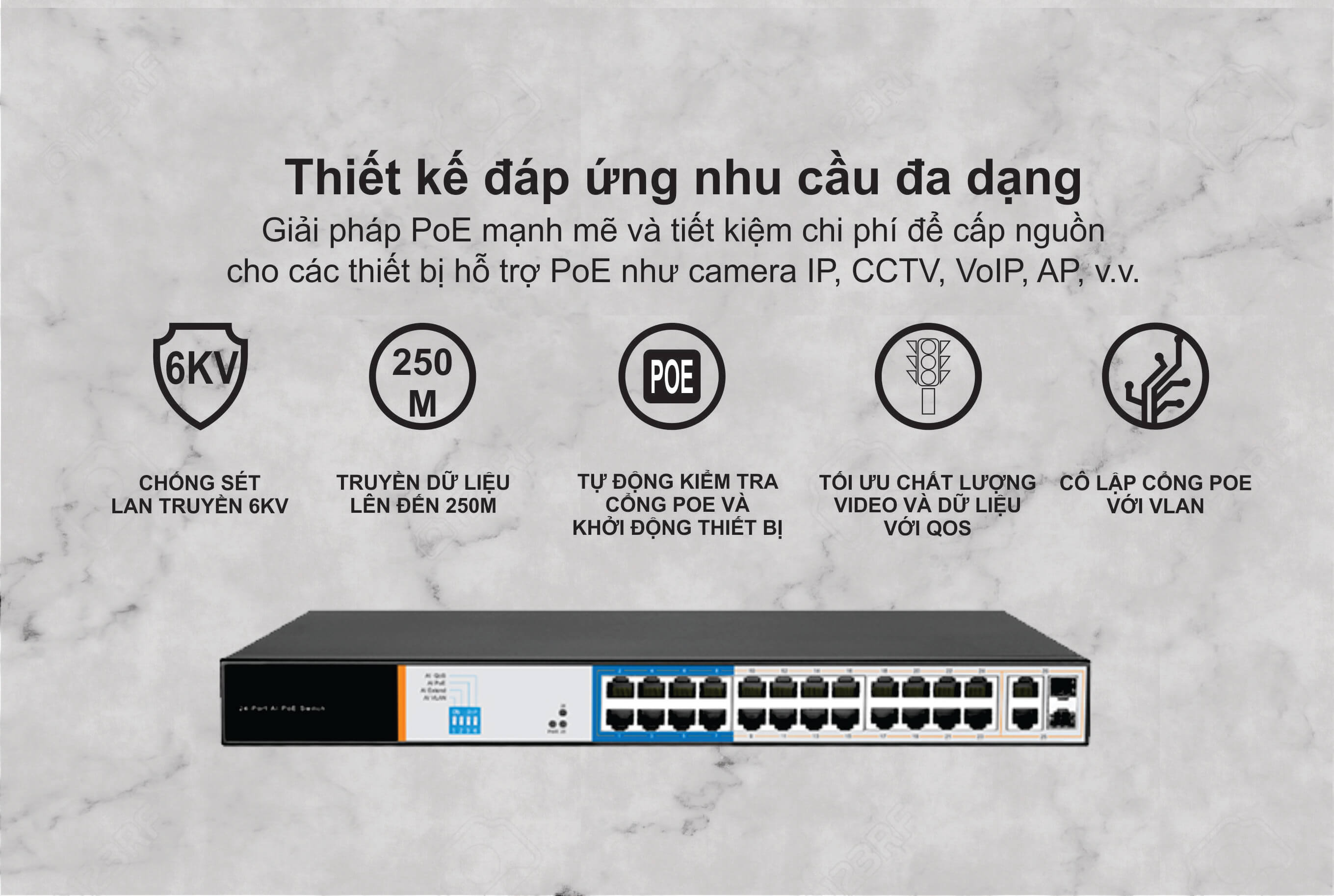 8 cổng 10/100/1000 Mbps RJ45 (802.3af/at)
