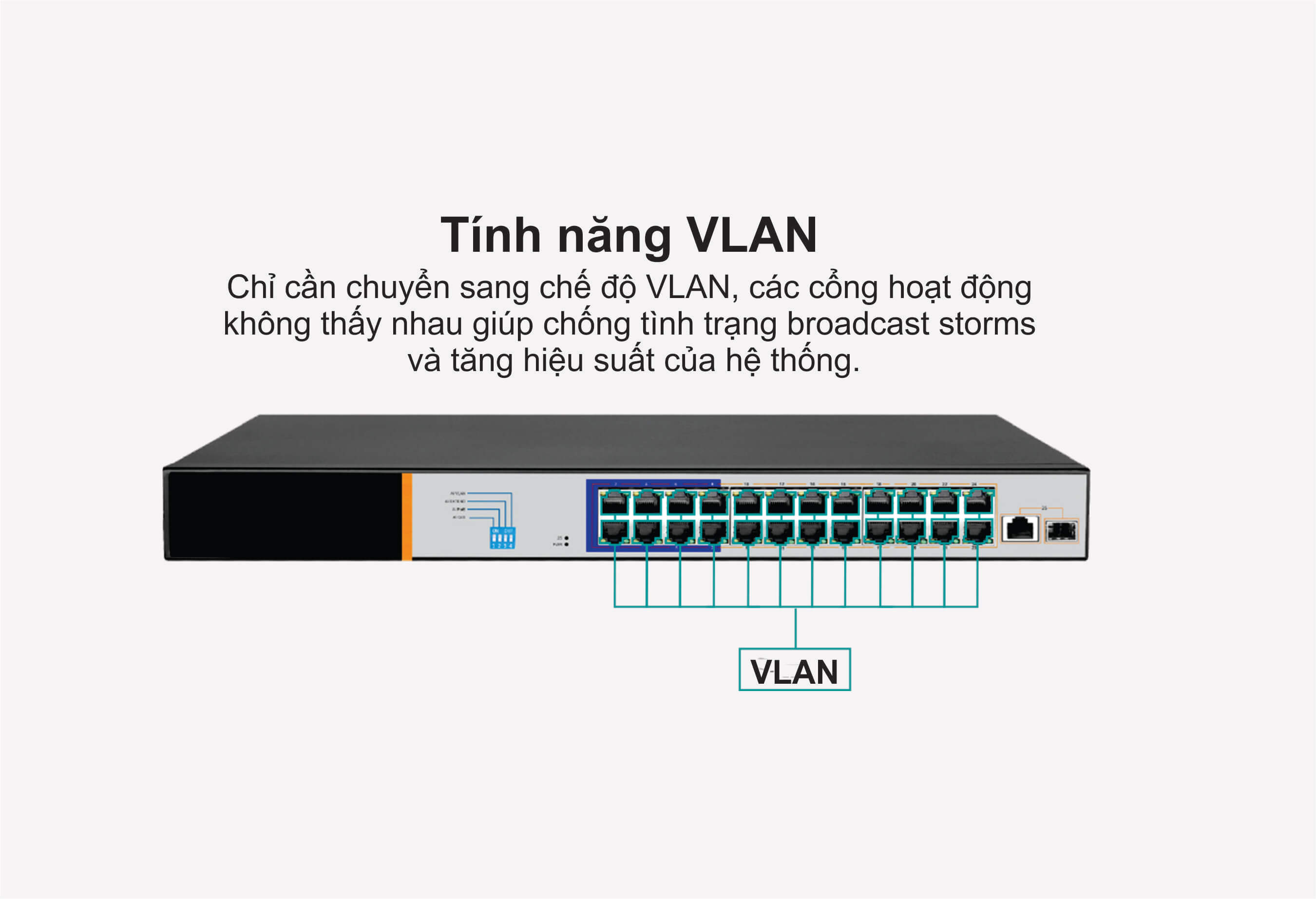 Chế độ chuyển tiếp: Store, Forward Tốc độ gói chuyển mạch: 14.88 Mpps Dung lượng MAC: 8K |